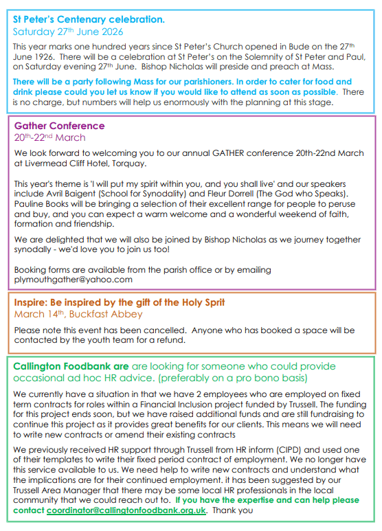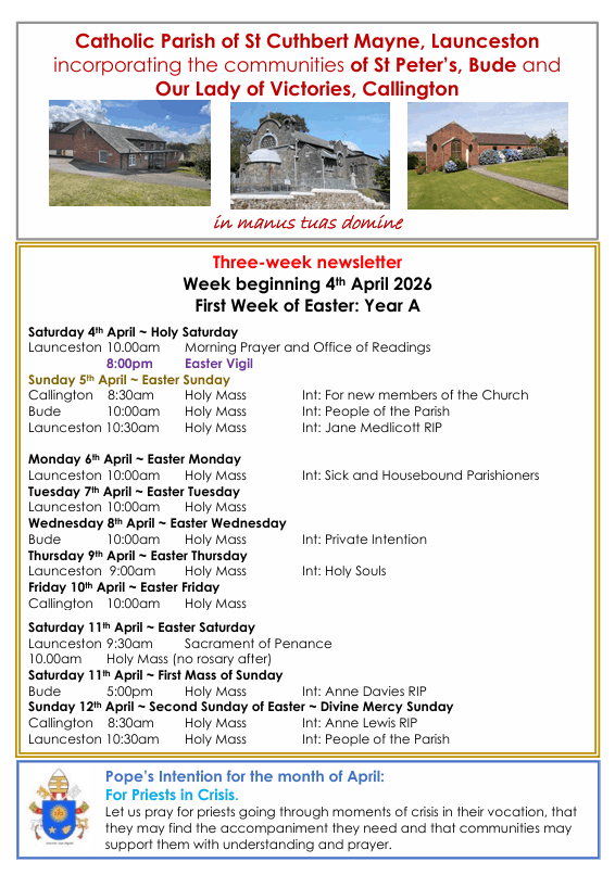 Due to the new General Data Protection Regulation (GDPR) we are unable to provide links to download previous newsletters. If you would like a copy of one of our old newsletters then please contact the parish office.