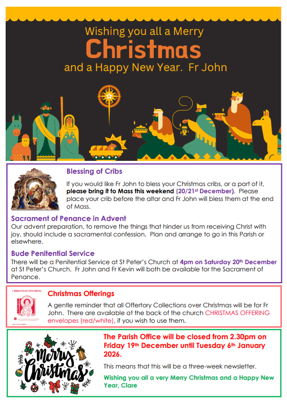 Due to the new General Data Protection Regulation (GDPR) we are unable to provide links to download previous newsletters. If you would like a copy of one of our old newsletters then please contact the parish office.